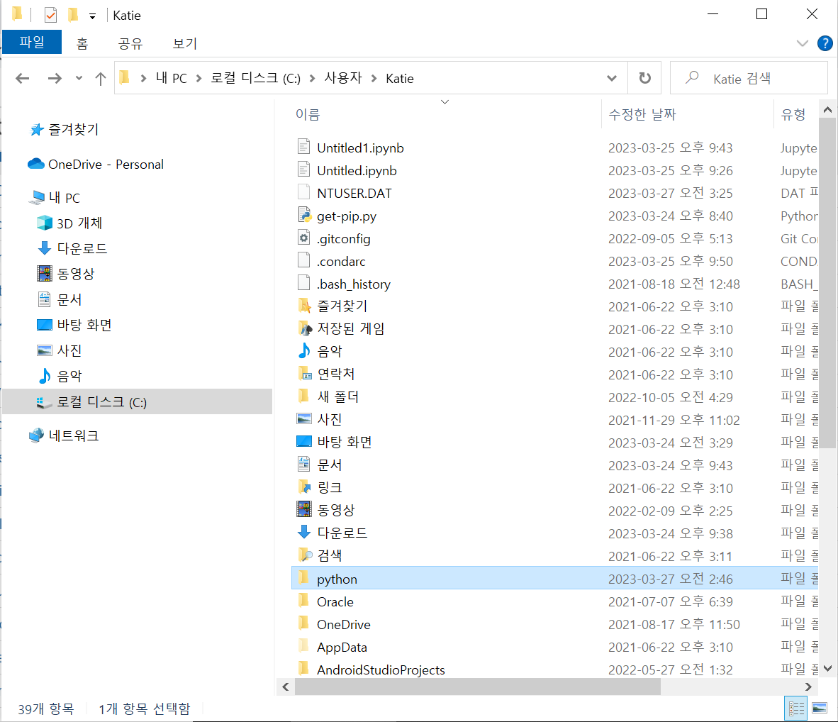 하기전에 파이썬 폴더를 만들어 주면 관리하기가 편하다길래 만들어 주고 시작