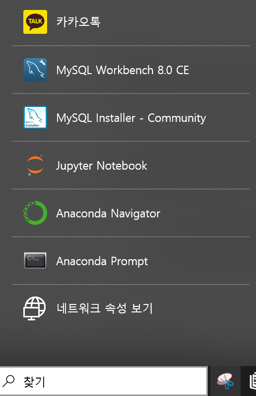 주피터 노트북이 바로 보이지만 처음 사용할 때는 어딨는지 몰라서 찾기 눌러서 검색하거나, 아나콘다 네비게이터 들어가면 나온다.