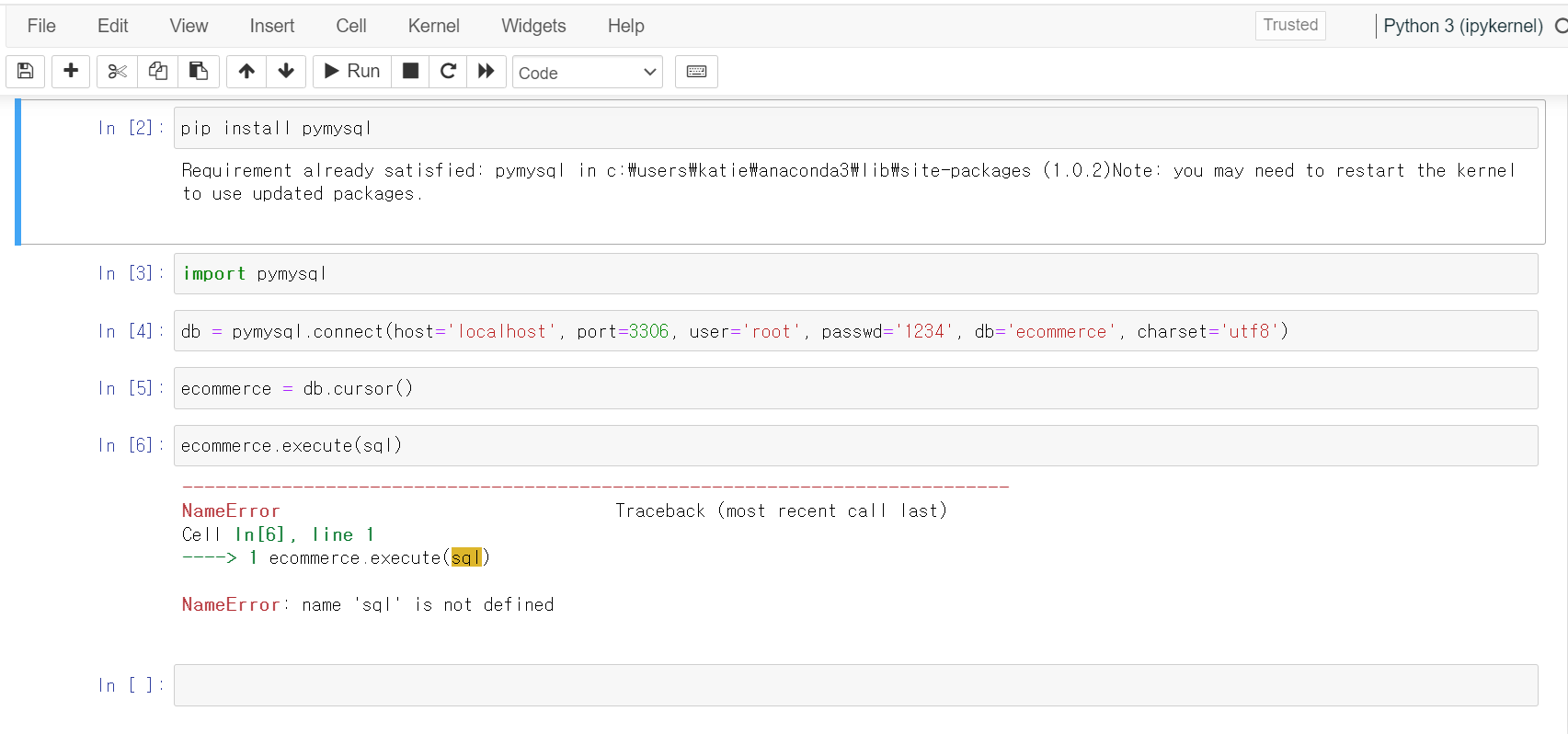 | [MySQL] 주피터 누트북에 python mysql연동하고, 실습하기1 (0) | 2023.03.27 |