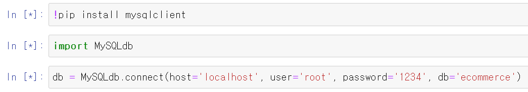 db = MySQLdb.connect(host='localhost', user='root', password='1234', db='ecommerce')