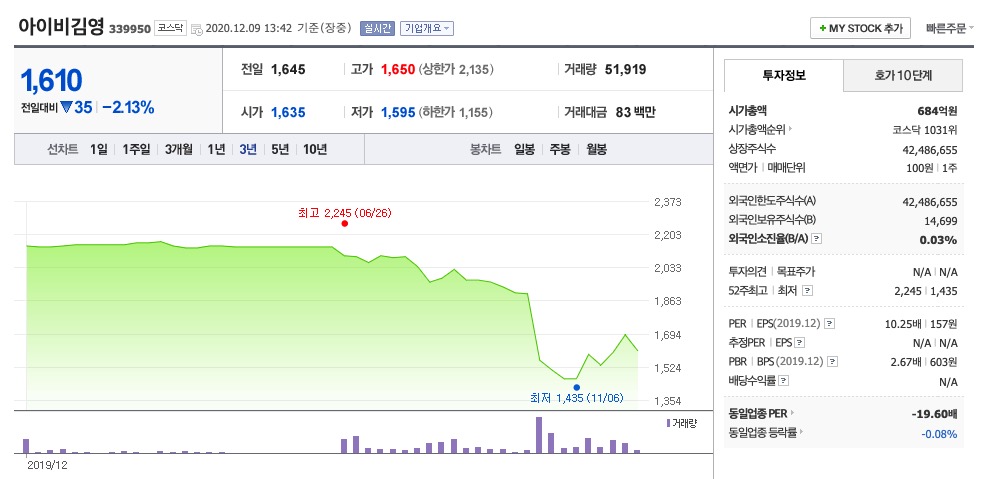 아이비 김영, 제가 매수한 단가는 1620원 이구요.(딱 사기 좋은 평단가)