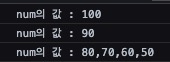 console.log(`num의 값 : ${num2}`);