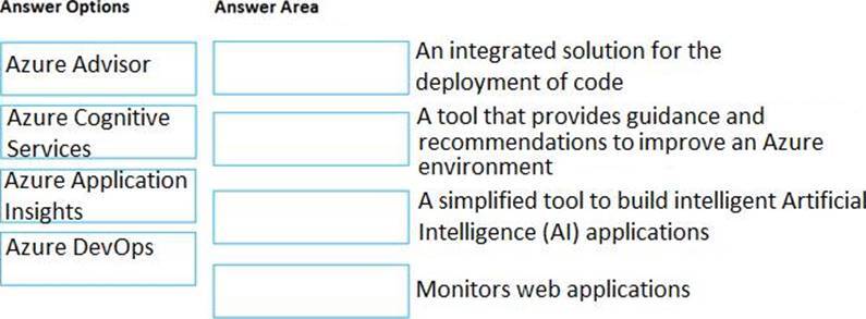 A simplified tool to build intelligent Artificial Intelligence (AI) applications - Azure Cognitive services Monitors web applications - Azure Application Insights