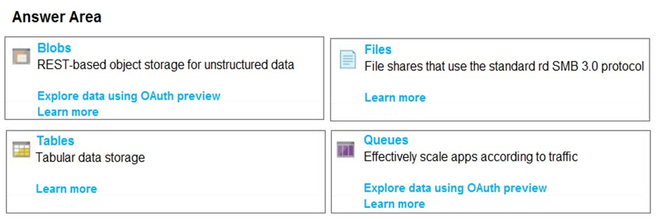 Azure Portal에서 어떤 블레이드를 사용해야합니까? 답변하려면 답변 영역에서 적절한 블레이드를 선택하십시오.