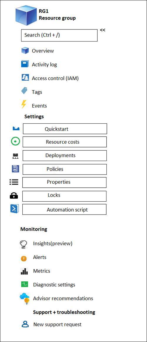 Azure Resource Manager에서 RG1이라는 리소스 그룹을 만듭니다.