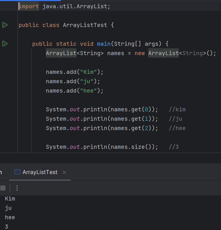 2. ArrayList를 사용하기 위해 객체를 만들어야 하는데, 저장할 객체의 타입을 꺽쇠<>안에 적어 주어야 합니다.