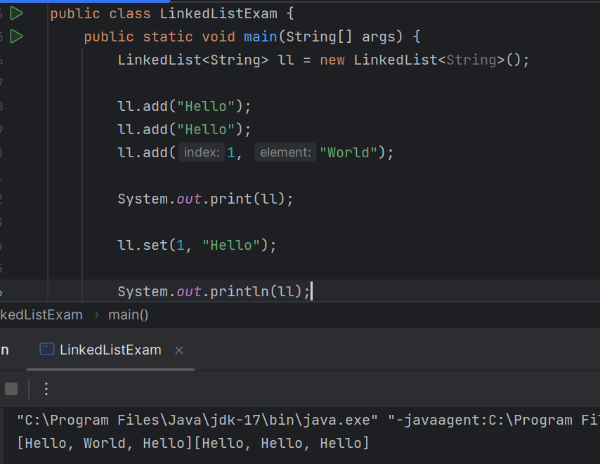 LinkedList의 값을 변경하는 방법은 set() 메서드를 사용하며, Index를 알아야 변경이 가능합니다