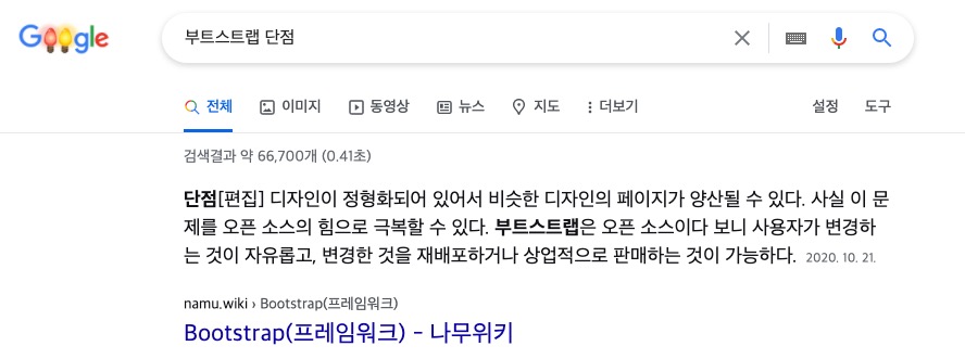 부트스트랩의 단점 그치만 이정도는 어느정도 조금씩 인지는 하셨을거라 생각합니다.