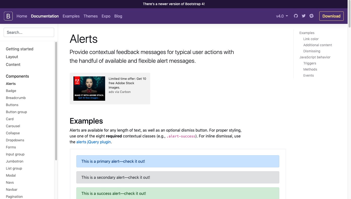 https://getbootstrap.com/docs/4.0/components/alerts/