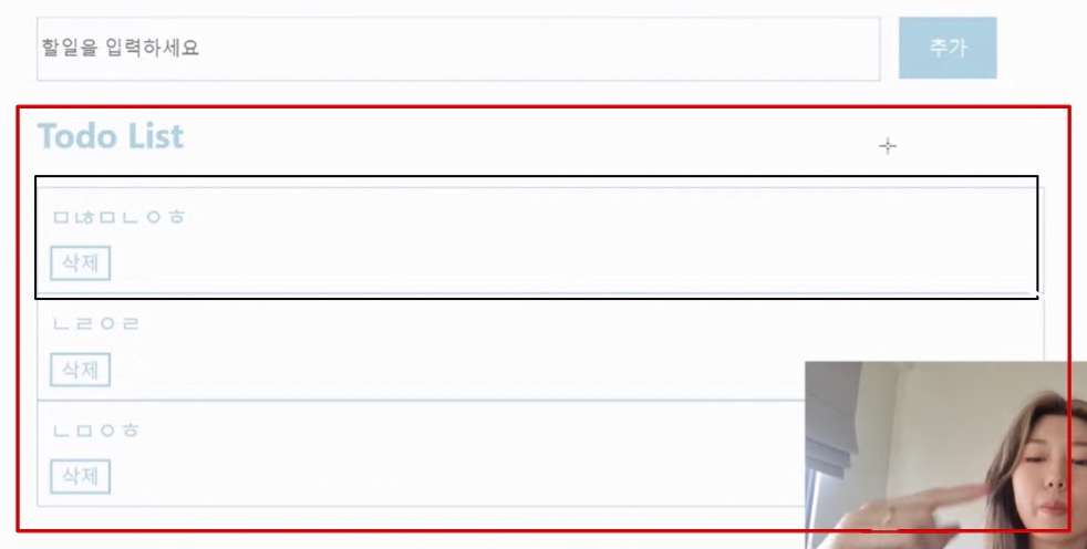 작은 컴포넌트는 추가되는 아이템 부분 - 검은색 선
