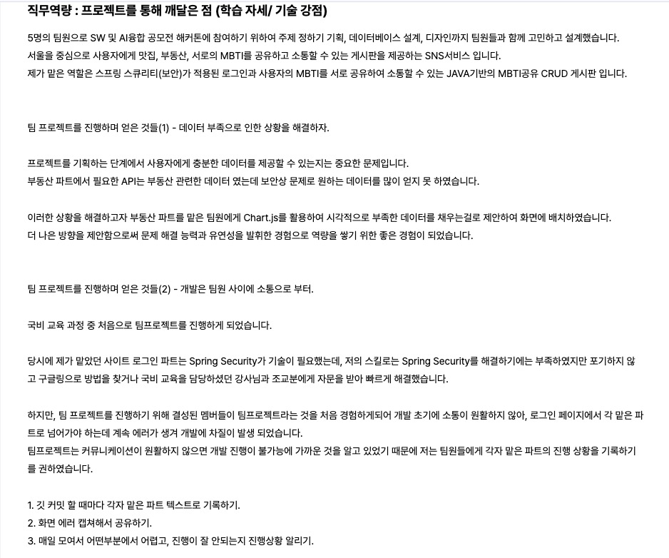 이러한 경험을 살려서 이력서와 자소서 프로젝트에 녹여내 이야기를 풀었다!!!