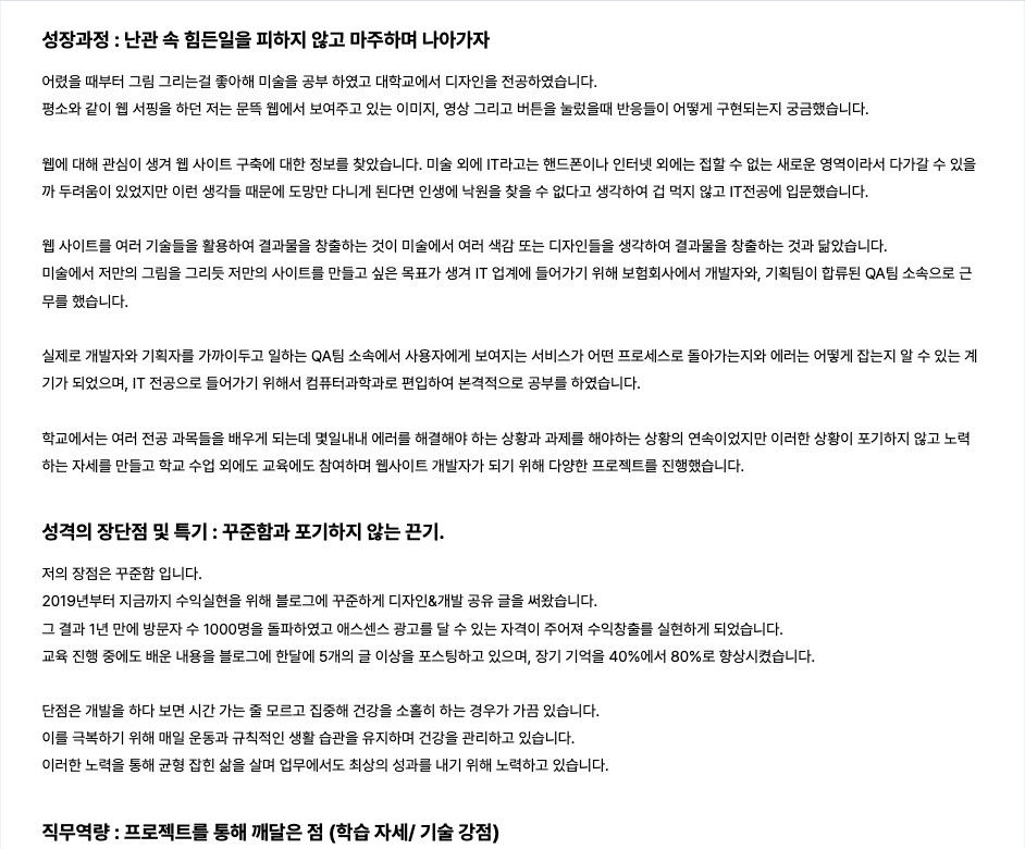 나의 장점은 뭘까, 그동안 무얼 했나 엄청 고민 하면서 작성을 했다.
