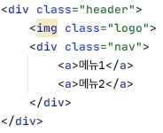 정리를 해보면, ((header=logo, nav)=nav=메뉴)