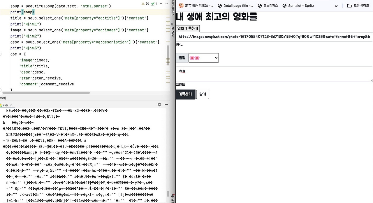 왼쪽 주소를 넣어주면 사이트 주소와 받을 그림의 타이틀이 없어 계속 에러가 아닌 해석이 안된 화면만 보내주고 있는 것.