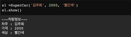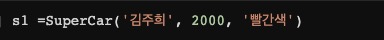 실행을 해보면 위에 만들어둔 코드와 아래 연결이 잘 되어 출력이 되는걸볼 수 있다. 이제 SuperCar() 클래스도 만들건데
