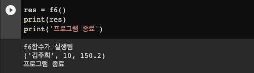 f6( )함수를 호출하고 위에 함수가 정의된 곳으로 가서 'f6함수가 실행됨' 출력해줘 하면 출력이 되서 나오고, 그 다음줄 값을 retuen해줘인데