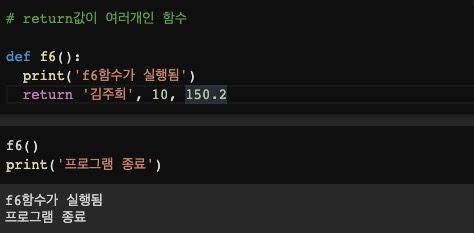 - 함수를 즉시 종료 시키고 싶을 때도 return을 사용하기도 한다(break역할)