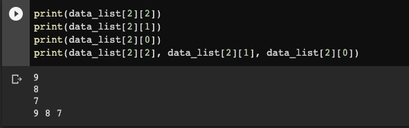 위 2차원 배열에서 9, 8, 7을 순서대로 출력하기