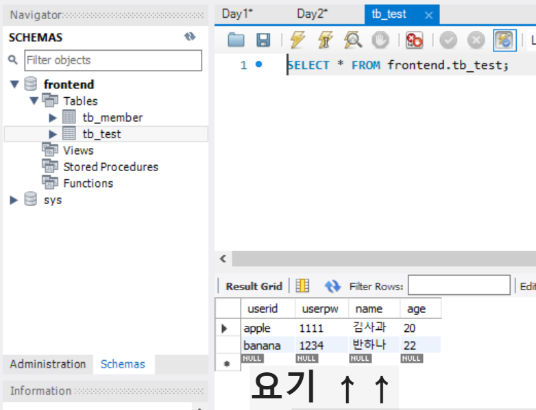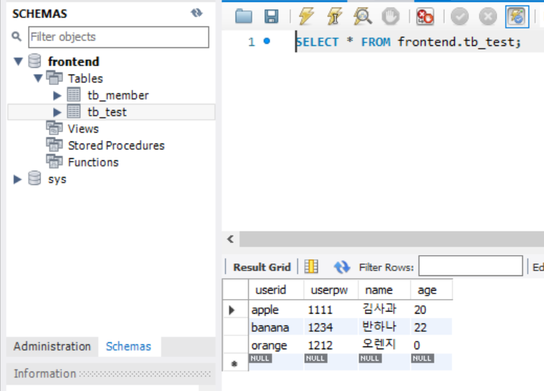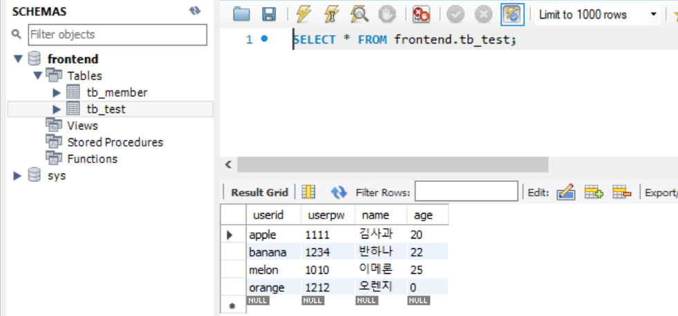frontend에서 Refrash를 해주고 tb_test에 마우스 오른쪽을 누르면