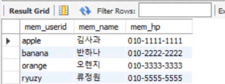 SELECT mem_userid, mem_name, mem_hp FROM tb_member;
