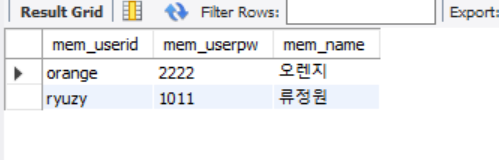 select mem_userid, mem_name from tb_member where mem_userid='ryuzy';