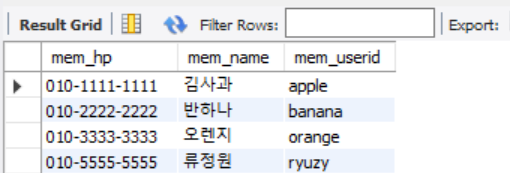 SELECT mem_hp, mem_name, mem_userid FROM tb_member;