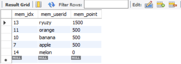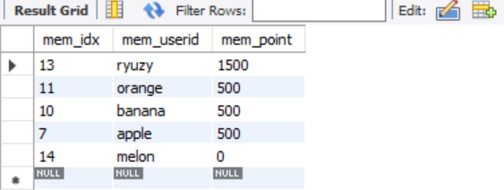 이제 기존에 있는 tb_member에 사용자들의 포인트값을 바꿔보기.