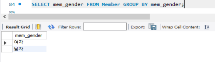 SELECT mem_gender FROM Member GROUP BY mem_gender;